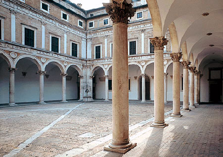 Detail of columns of Ducal Palace in Urbino |