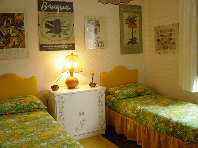decorated in pretty floral cotton fabrics. There