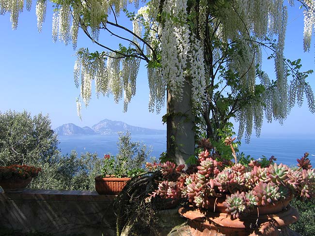 The view is splendid, one can see Capri, Ischia, Vesuvius and the Bay of Naples.