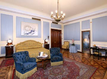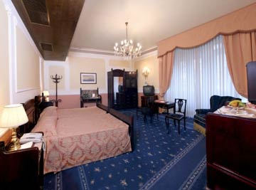 The majority of rooms are medium in size but extremely pleasant and comfortable. The style is very classic with antique beds and furniture and small hanging chandeliers. Bathrooms are in good condition throughout. |