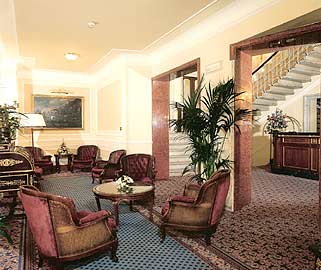 The lobby is small and elegantly furnished with a dark wood reception area and limited seating. A marvellous spiral staircase leads to the upper floors. The hotel has a small a la carte restaurant.