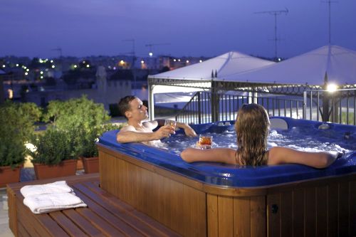 Breakfast room, two bars, meeting room, library, Wi-Fi spots, health club, Jacuzzi tub in the roof-garden with gazebo, terraces, solarium, parking with agreement (200mt far from the hotel).
