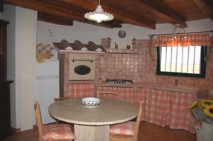 beamed kitchen/dining room