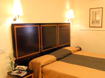 Rooms are medium in size and furnished in a pleasant style. They are decorated in cream colour and equipped with wooden furniture. The pastel colour gives a comfortable and realaxing atmosphere.