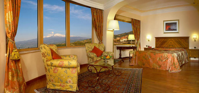 - 102 refined and well equipped rooms. Suites that overlook Mount Etna and the bay of Naxos, invigorated by the bright, warm colours of the Gulf.