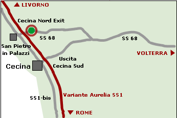 BY CAR: Exit at Cecina Nord, then, after the SS1 main road (called “Variante Aurelia”), drive on towards Cecina. After about 900 m., you will find Il Vallino Farm Holidays on your right.
