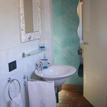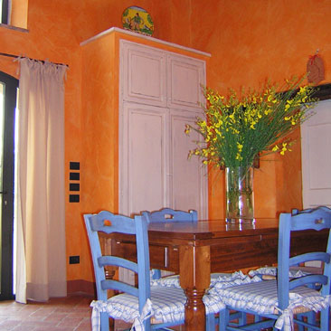 “Il Colle di Sotto” can sleep up six people and it is composed of a luminous, multicoloured and fully equipped kitchen with the latest mod cons, two double bedrooms with double antique iron beds and two bathrooms with cabin shower. Upstairs there is an open-plan upper-gallery with a large sitting room with two sofa (one is a sofa bed for two people), equipped with Satellite TV, DVD player, stereo with CD player, free ADSL internet connection, books, a fireplace with firewood and an antique Tuscan chest of drawers.
