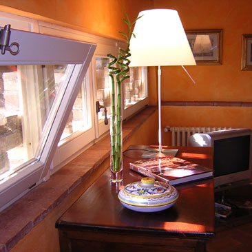 Outside there is a spacious luminous veranda, equipped with chairs, deckchairs and a table, where is possible to sun-bathe and to have splendid open air breakfasts or romantic suppers, and where our guests can relax anytime they want with a unique, peaceful and suggestive view.