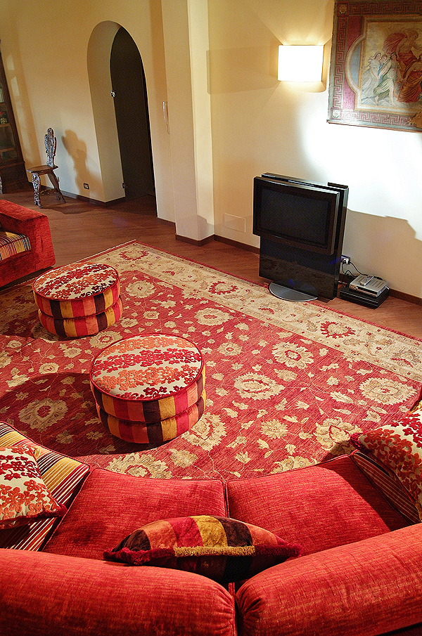 From the main staircase of the hall you can go to the first floor. A great room, which was originally used as a granary and as a warehouse, is now furnished of a big and comfortable sofa, of armchairs and of a warm and hospitable parquet.