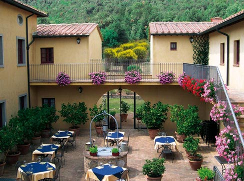 Hotel Casolare le Terre Rosse, just a couple of kilometers from the walls of San Gimignano, is a small village unto itself, sitting in a large park-like setting where one can stretch one's legs, take the sun, relax under the shade of umbrellas, and gain a sense of ease.