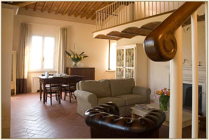 The main villa of Poggio al Casone dates to the nineteenth century. It is located in the estate’s centre on a hill (the “poggio”). The estate has two other guest houses. The apartments have been built according in the Tuscan style and furnished under the supervision of some of Tuscany's top designers, who have chosen exclusive furniture, and who have paid painstaking attention to detail. The result is a luxurious, elegant harmony throughout.