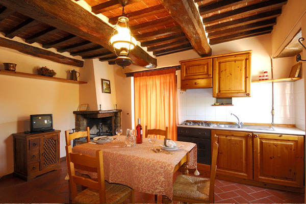 Particular care has been taken in the restoration. Terracotta floor tiles and wooden beamed ceilings help to achieve a warm atmosphere. The apartments are very well furnished in country style with furnishings which reflect another age. Every residence has its own independent entrance and central heating, a lounge, kitchenette and bathroom with shower.