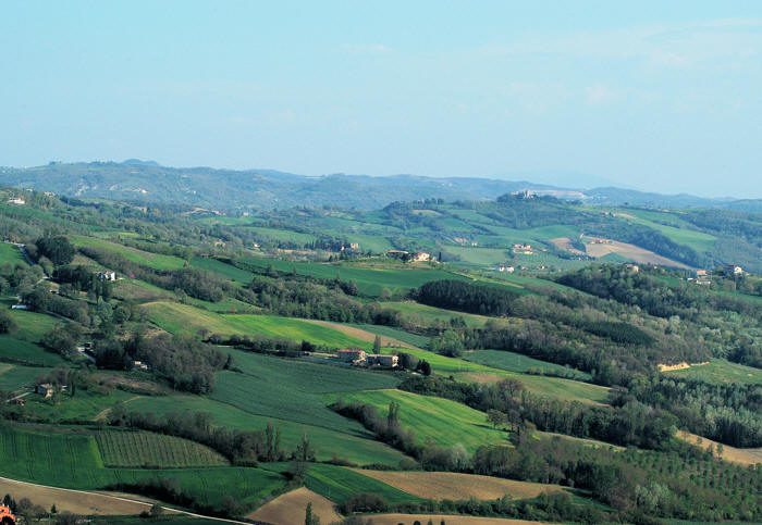 Just outside the majestic walls there are typically picturesque Umbrian farmhouses, and down below the Chiascio River flows through a lush green valley that Saint Francis of Assisi used to tred on his way to and from Gubbio, comuning we suppose, with fauna encountered along the way.