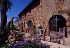 La Colombaia is an historic farmhouse that dates from the 1600s whose terraces and apartments look over the wide, gorgeous expanse of the Tiber Valley. The building has the peculiar feel of being immersed in farmland, but Todi's centro storico - historical center - with its graceful old buildings and churches, as well as its cafes and shops are a very short walk away - just 300 meters.
