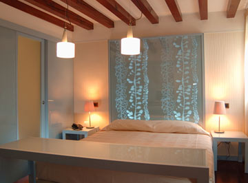 Design rooms with modern comforts such as glass walls, plasma tv screens and internet ADSL access. Some rooms have king size bed. The rooms have been designed thinking of a delicate colour scheme that mix a pale blue with a light gray, white and cream colours, to create an elegant and sophisticated environment. The rooms and the bathrooms are small to medium in size.