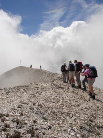 Reach the cross at the summit feeling a real sense of achievement, and looking up at the Big Horn mountain - perhaps your future goal?
