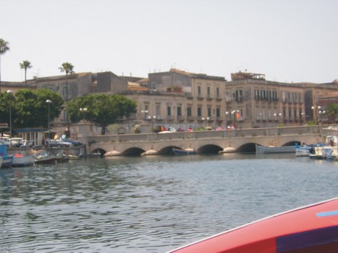 Ortygia Island Bridge or by water taxi, a