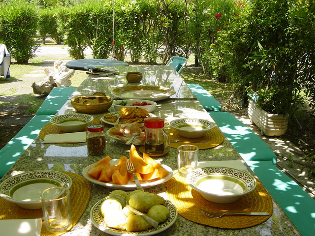 tiles. For outside entertaining, there is a