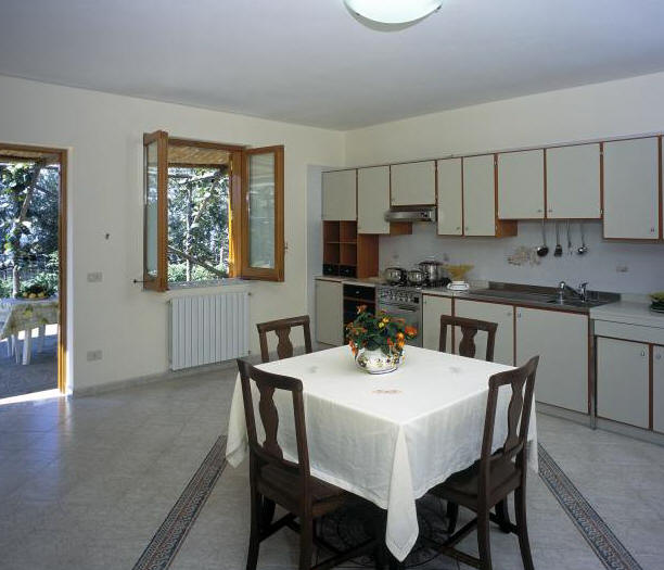 In front of the apartment there is a wide courtyard, about 100 square meters shadowed by a pergola, a very typical wood construction of the peninsula. The courtyard in front of the apartment is equipped with a table, chairs and two deckchairs that will allow you to relax or to have a dinner with Capri island on the background.