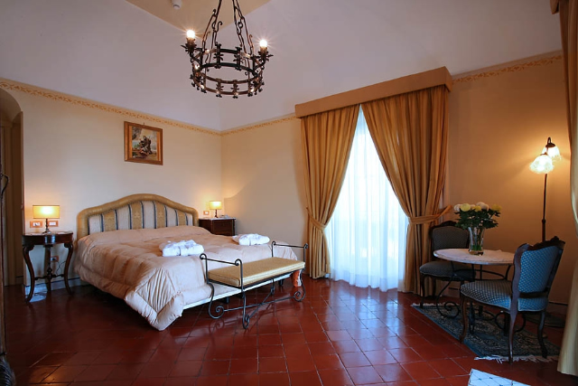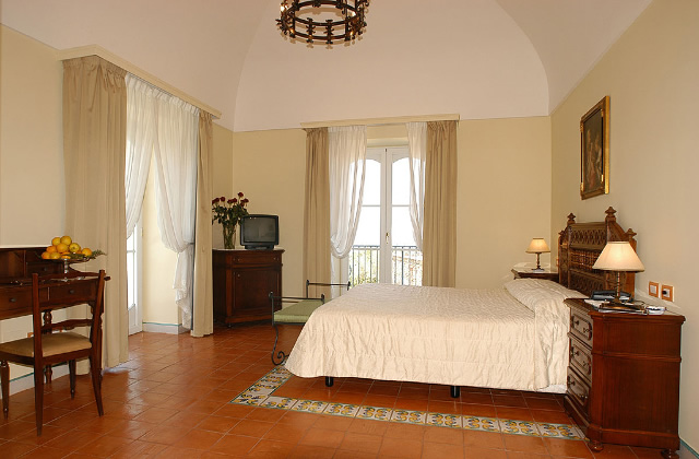The Penthouse is the most luxurious and extensive suite of the resort, finely furnished with antique furniture and Vietri ceramics, all typical of local manufacture.The room is the largest at the Relais, really a mini apartment, which is equipped with a king bed in a separate bedroom, lounge room and bathroom with a hydro massage bathtub and shower.