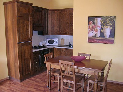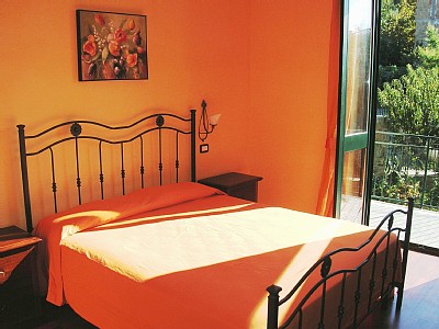 Flats have a surface of about 55 m² and are composed from a double room, a twin-bedded room, American kitchen, diving room with divan single bed, TV/SAT, bath with shower, hair dryer, washing machine, iron. All rooms are equipped of conditioned air and linen. First floor flats enjoy a wide terrace with sight sea. Ground floor flats enjoy a wide private garden .
