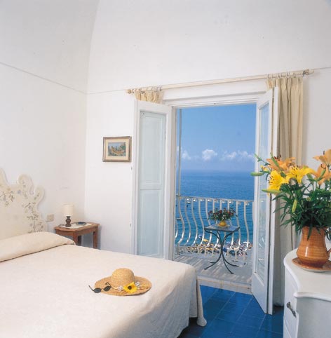 All the rooms, tastefully furnished, have a private balcony, en-suite bathroom, air-conditioning, satellite TV, telephone, and fridge. The turquoise and blue hand-painted ceramic tiles from Vietri bring a breath of sea breeze into the rooms adding to their beauty and light.