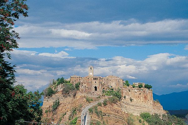 Bagnoregio We are now in Alto Lazio, known for its rolling upland landscape cut by ravines, its fine gardens and palaces, and wealth of Etruscan sites and treasures. The day commences with a stroll through the nearby Palazzo Orsini by Vignola, and the Mannerist park of monsters at Bomarzo, where giant statues of imaginary animals lie scattered among huge rocks. We cross the Tevere River to Lugnano in Teverina for lunch, followed by a wine tasting at the Mottura cellars. We return via Civita di Bagnoregio, an abandoned medieval town of fantastic and surreal beauty, set atop dramatic looking ravines. |