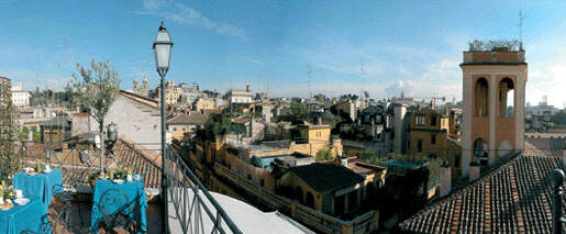 Before venturing into the streets of Rome, guests will enjoy a superb breakfast...served in clement weather on the Roof Garden Terrace with its views toward Trinita dei Montie and Villa Medici.