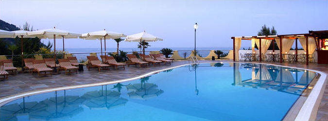 Overlooking the see, the panoramic hotel swimming pool is the ideal place to have a drink with friends, to go for a refreshing swim, to get a lovely and relaxing tan, and to live moments in harmony with the splendid nature of the place.