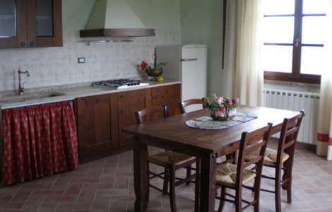 The building is found in a splendid panoramic position, at the highest point of the entire farm. The structure is completely renovated in the traditional Tuscan style both in terms of decoration and finishings with aged terracotta "mezzane" and wooden rafters.