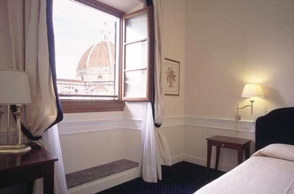 The 45 rooms at Hotel Calzaiuoli are all furnished with elegance and taste, in perfect Florentine style. Most of them offer a dramatic view of typical Florence rooftops and main monuments, such as Brunelleschi's Dome, Giotto's bell tower, Palazzo Vecchio and the Uffizi Gallery.