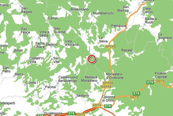 - When you reach Siena, do not enter the town but go around it following the signs for Arezzo-Perugia. Drive past the Castelnuovo Berardenga exit without leaving the main road. Then take the Colonna del Grillo exit and follow the signs for Bucine. After roughly 3 km you will find on your left a sign to Montalto. Drive 3.2 km to the end of the road (of which the last 2.5 km are unpaved) where we will be expecting you at the Castle.
